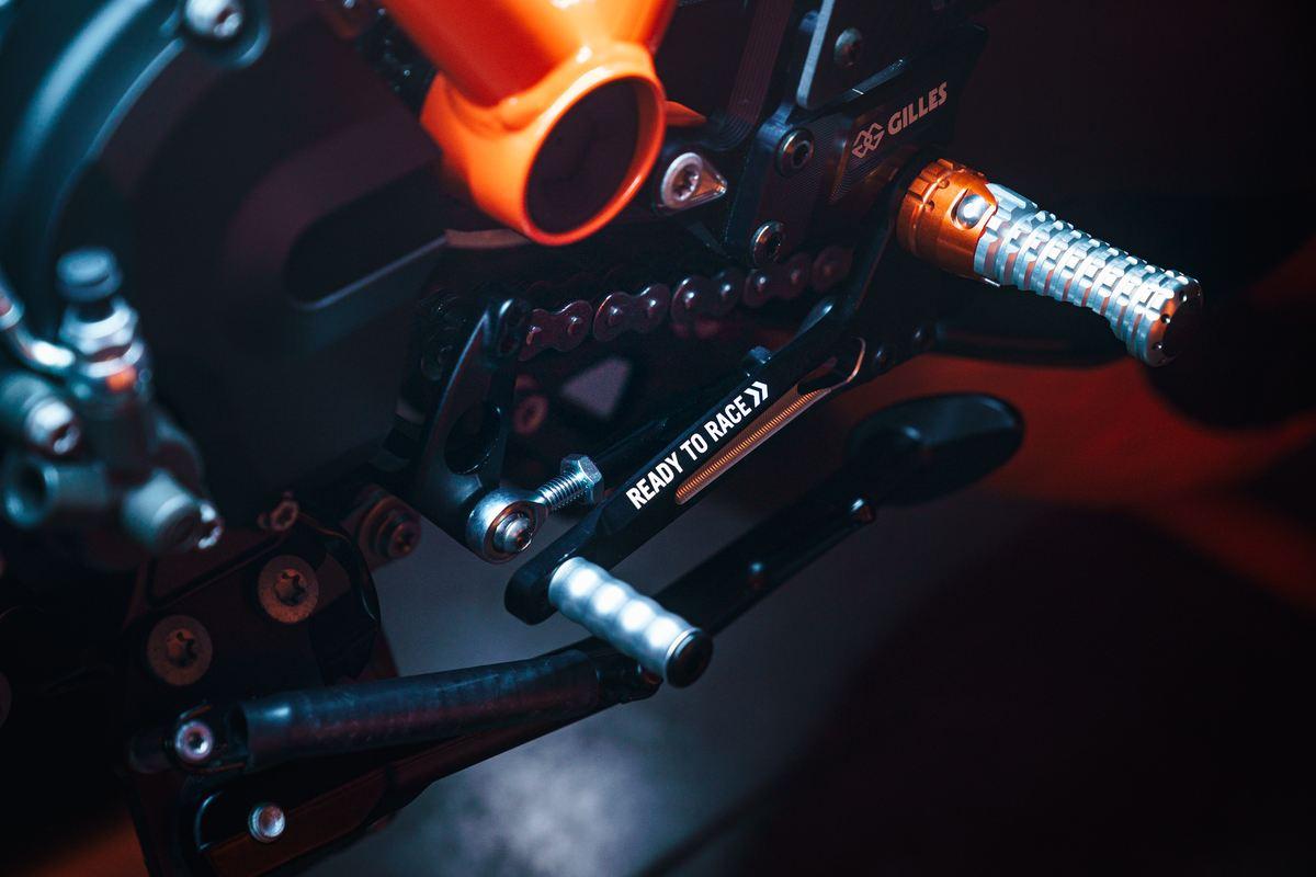 - Die komplette Fußrastenanlage kann außerdem um 12° nach oben verdreht werden indem man den alternativen Montagepunkt am Rahmen verwendet. Dadurch erhält man weitere Positionen für die Fußraste