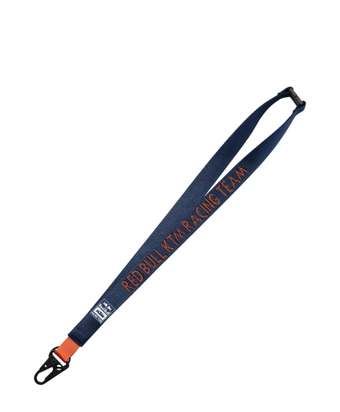 - Gewebtes Schlüsselband mit aufgedrucktem Red Bull KTM Racing Team Logo in Weiß und eingewebtem Schriftzug in Orange